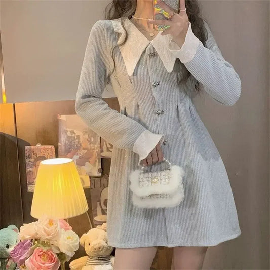 Blue Baby Doll Collared Dress