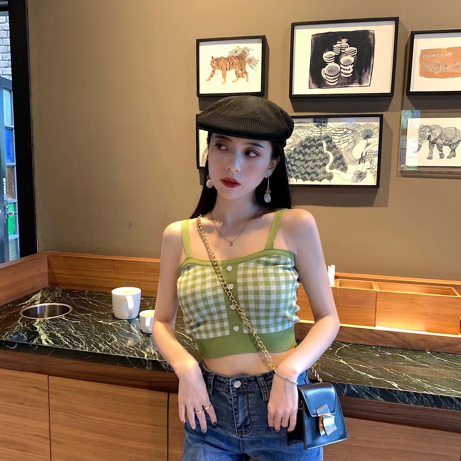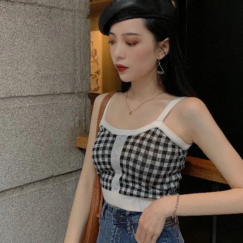 Super cute plaid crop top with little heart buttons. Great for warm weather.